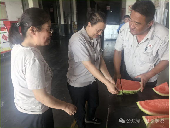 點擊量:192近日,陜西地區(qū)持續(xù)高溫,戶外溫度直逼 40℃。在這樣的悶熱天氣中,延長橡膠公司的生產(chǎn)一線依舊呈現(xiàn)出一片繁忙的景象。原材料庫的工作人員們始終堅守在庫區(qū)的各個崗位上,全力保障全鋼、半鋼輪胎的生產(chǎn)供應(yīng),采供部更是針對性地開展了一系列 “送清涼” 活動,為一線人員注入夏日里的清涼動力。